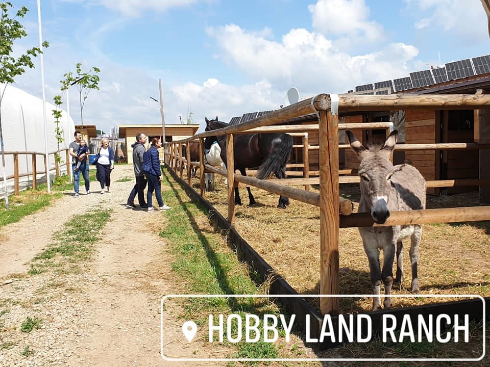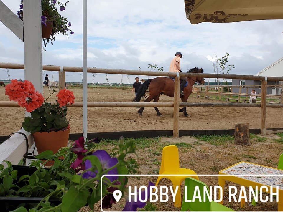 Terasa în aer liber și acoperită, cu cafea bună, băuturi răcoritoare și grătar, căluți și ponei, lecții de echitație în aer liber și în manej acoperit, loc de joacă în aer liber cu Castel Medieval. Pe toate le găsiți la HOBBY LAND RANCH.