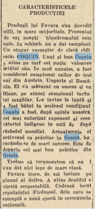 Aici este povestea despre un alt cal remarcabil din istoria galopului din România. Este vorba despre Coquin.