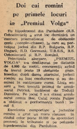 Tot PETRICĂ revine în 1962 și câștigă premiul VOLHY pe 4.000 m. Tot cu Toduță Dumitru în șa.